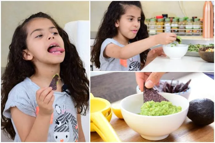 الأڨوكادو مغذي جداً ويحتوي على عناصر غذائية متنوعة، وتشمل 20 ڨيتامين مختلف ومعادن. الأڨوكادو أيضاً يحتوي على الكثير من الدهون الصحية، ونسبة الألياف فيه عالية. وهو لذيذ جداً وسهل إضافته لأي نوع من الأطعمة بفضل مذاقه المحايد، بالإضافة إلى أنه كريمي جداً. إذا كان أطفالكم يحبون السموذي، فهم لن يلاحظوا إذا قمتم بإضافة ربع حبة اڨوكادو. أما أنا فأطفالي يحبون الاستمتاع به في أكثر طريقة مشهورة لتناوله وهي الجواكمولي هناك عدة طرق للقيام بعمل الجواكمولي، ولكن أسهل طريقة لذيذة ترضي الذواقين هي هرس الاڨوكادو مع الملح، الفلفل، وعصير الليمون أو الليمون الحامض. ثم نستخدم القليل من خبز البيتا المقرمش أو رقائق التورتيا ونتناول الجواكمولي ونستمتع به.وسيستمتع أولادكم بعمله معكم أيضاً وإذا قاموا بمساعدتكم على الأغلب سيرغبون في تناوله..