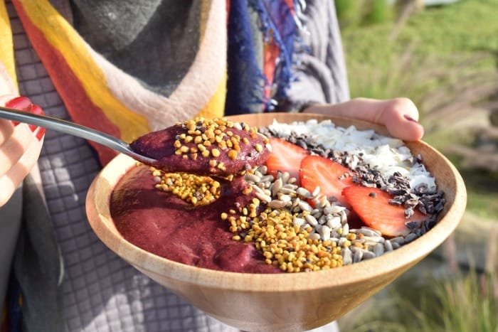 I didn’t add any granola to the bowl as I’m keeping it totally sugar-free. But I’m sure it would taste awesome with some homemade granola sprinkled on top.