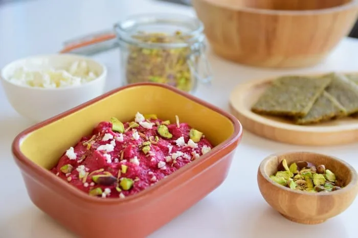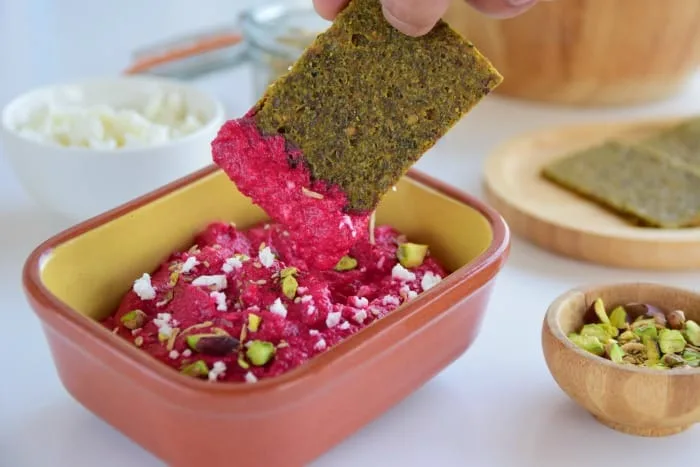 Any excuse to make something pink….my absolute favorite color! Adding labneh makes the dip creamy and the pink an even prettier shade. Serve with crackers, spiced pita chips or on toast. A sprinkle of feta cheese and dukkah on top makes it extra special.