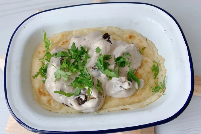 Serve hot garnished with parsley, or with this mushroom sauce poured all over.