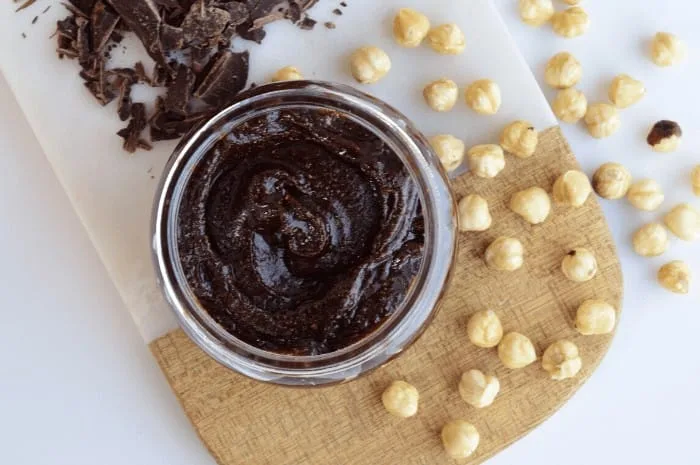 1. Place the hazelnuts in a food processor and process for about 5 minutes until the nuts turn into a butter. You may need to stop and scrape the side a couple of times.