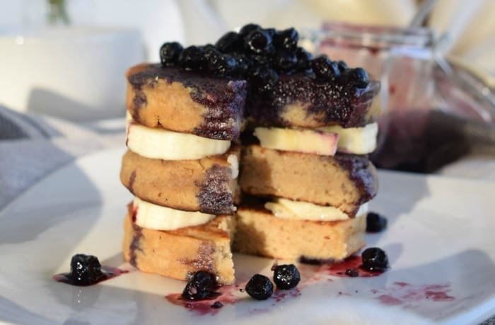 Coconut Power Pancakes with Blueberry Compote
