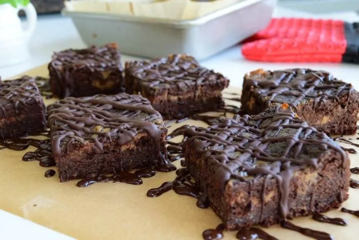 من كان ليصدق أننا نستطيع عمل براونيز فادجي ومترفة وهي ليست نباتية فقط, بل وخالية من الغلوتين والسكر المعالج أيضاً! كل من ذاق هذه البراونيز قال أن مذاقها رائع … وبالطبع أنا أوافقهم الرأي. هذه البراونيز تعتبر شيء مشبع من الشوكولاتة, و تناوله لا يسبب الشعور بالذنب … فقط ضعوا في اعتباركم أن نسبة السعرات الحرارية في الوصفة ليست قليلة … فحاولوا أن لا تتناولوا المجموعة كلها. يتم تقديمهم دافئين مع القليل من الآيس كريم الخالي من الألبان أو قوموا بعمل نايس كريم وانقلوا هذه الوصفة إلى مستوى آخر. أما ذلك أو تناولوها كما هي مع القليل من القهوة كما فعلت أنا.