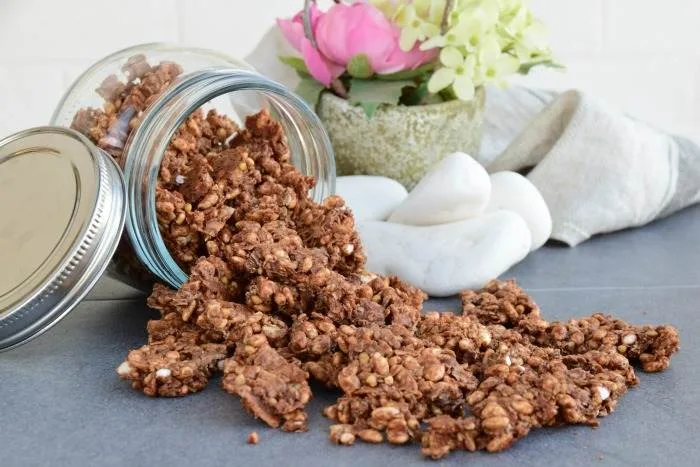 هذه الجرانولا هي الوجبة الخفيفة المثالية مع كوب من الشاي أو القهوة. نحن نقدم جرانولا الشوكولاتة في كرمز على وعاء السموثي بالشوكولاتة والتوت الخاص بنا. فهيّا زينوا وعاء السموثي الخاص بكم بهذه الوصفة. أنا اعتقد أنها ستكون رائعة وهي مرشوشة على شوفان أو بودينج الشيا. لذييييذة !