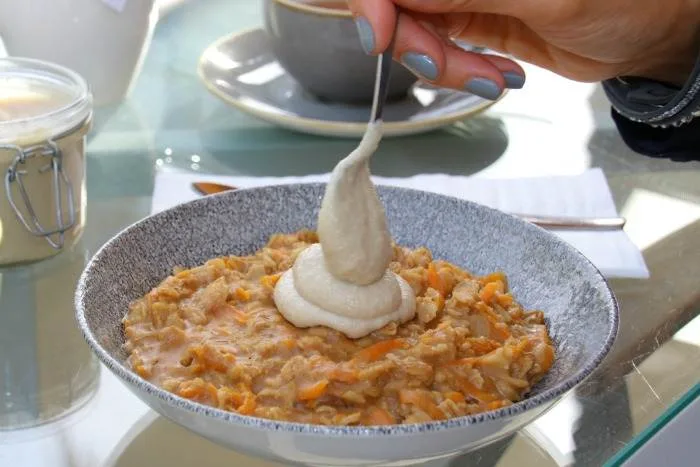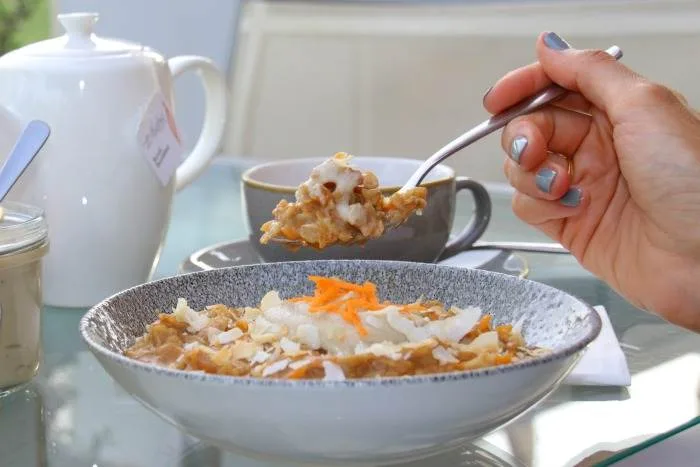 والآن بعض من النصائح عن المكونات والاستبدالات. حاولوا استخدام رقائق الشوفان بدلاً من شوفان سريع التحضير أو الطهي، لأن هدفنا هو أن يصبح الجزر طري جداً، ومن المهم أن نطيل وقت طهي الشوفان. أنا استخدمت حليب اللوز، ولكن بالتأكيد أي حليب نباتي أو حتى الماء سينجح مع الوصفة. وبالتأكيد يمكنكم إقصاء الزنجبيل من الوصفة إذا لم تكونوا من محبيه، ولكن من رأي من المهم استخدام القرفة لأنها تتماشى جداً مع الشوفان والجزر. أما بالنسبة للزبيب فيمكنكم إقصائه هو وسكر جوز الهند بالتأكيد. ولكن الشوفان لن يكون مذاقه حلو بنفس النسبة. إذا قمتم بتجربة هذه الوصفة عدة مرات ومللتم منها يمكنكم استبدال الجزر المبشور بالتفاح …. لذيذ!