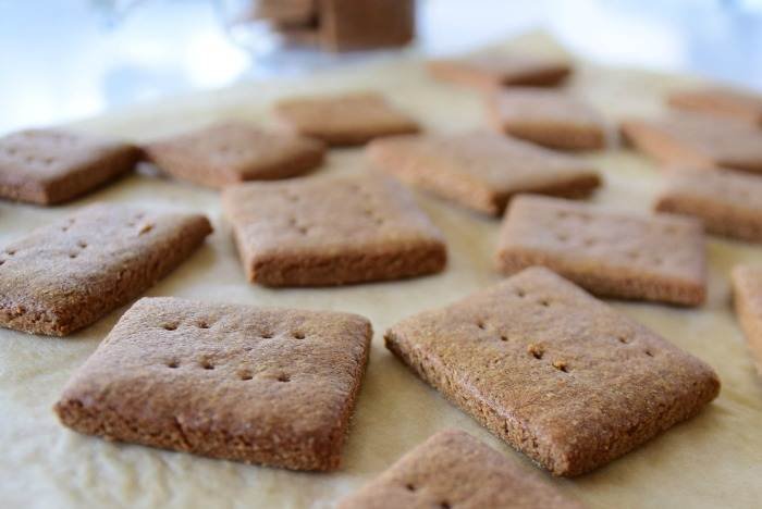Bake the biscuits for 10-12 minutes until they start to brown on the sides and bottom. Their color won’t change so much since they start out with a brown color to begin with. The longer you bake the crispy they will be, so it also depends on what you prefer.