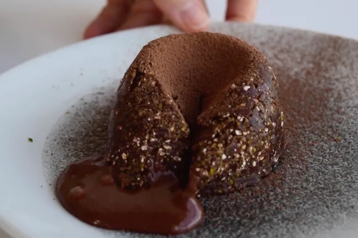 Okay the taste is delicious of course…I mean the ingredients are dates and chocolate.. I must admit it’s heavy and very rich. Which is good as you’ll be satisfied with a few bites. But in order to get that molten lava effect we all like to take videos of (admit it, you’ll make it just so you can snap it)…it needs to be larger than most people can eat in one go.
