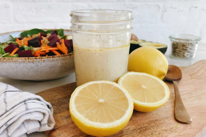 1. Mix the ingredients together. Add more lemon juice, salt and pepper to taste. Store in the fridge in a sealed jar for 5 days.