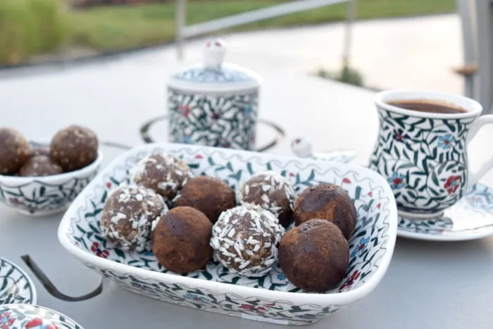 في الوصفة بالأسفل جمعت بين مزيج مفضل من البندق, القهوة, والقرفة الذي يتناسب تماماً مع كوب القهوة الصباحي أو وجبة خفيفة بعد الظهر لاستعادة النشاط. يمكن ترك الكرات بدون إضافات أو وضعهم في بودرة الكاكاو, المزيد من القرفة, جوز الهند المبشور, أو حتي المكسرات المطحونة.