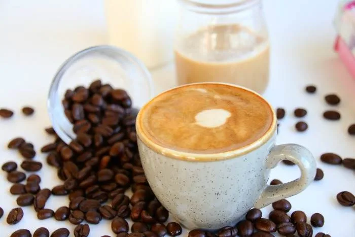 4. In the meantime prepare your espresso and pour into your cup. Pour the frothed milk over the coffee and enjoy!